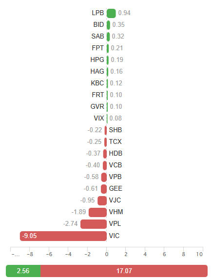 VIC‘s rebound from a 7% drop to just over 2% loss was pivotal, reducing its negative impact from 9 points to 3 points, aiding the index’s recovery.