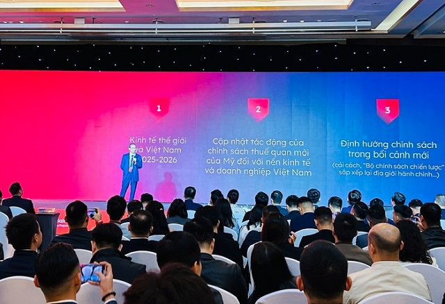 Dr. Cấn Văn Lực speaks at the Vietnam Real Estate Conference 2025 (VRES 2025). Photo: Nguyễn Lê