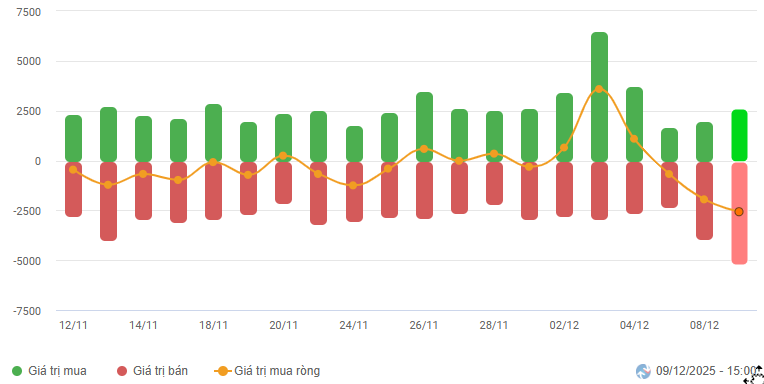 Foreign Capital Movement: Foreign investors continued to net sell in the December 9, 2025 session. If foreign investors maintain this action in upcoming sessions, the situation could become even more pessimistic.