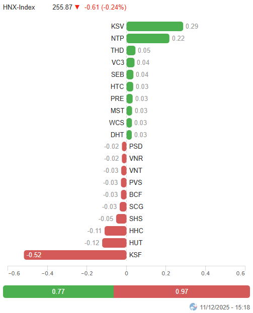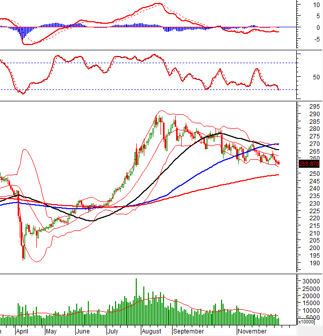 The HNX-Index experienced a slight decline after struggling at the November 2025 low (equivalent to the 255-259 point range). Trading volume has consistently remained below the 20-day average, making it difficult to expect a significant breakthrough in the short term.