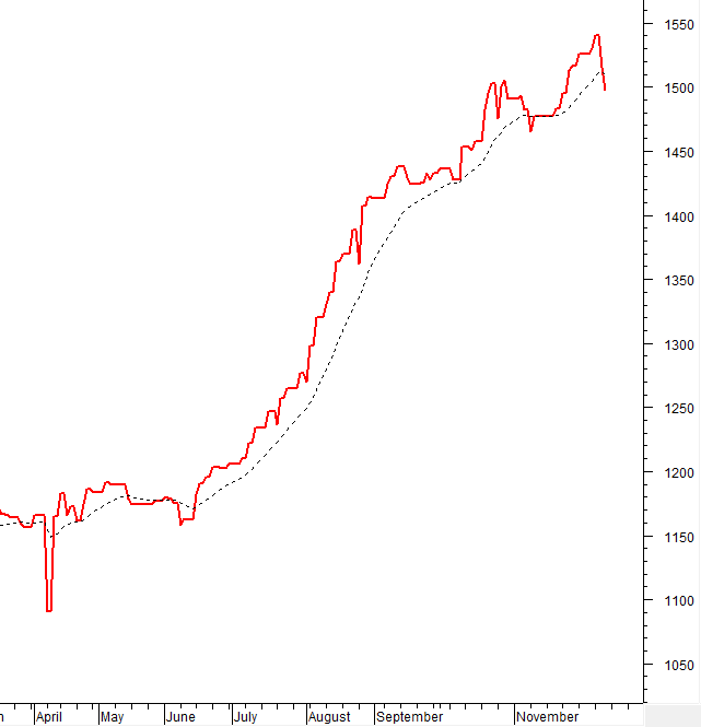 Smart Money Flow: The Negative Volume Index of the VN-Index has crossed below the 20-day EMA. If this condition persists in the next session, the risk of a sudden downturn (thrust down) will increase.