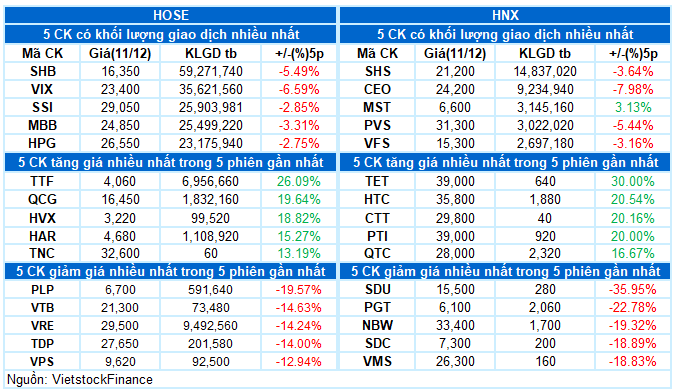 – Major indices continued to decline during the December 11 trading session. Specifically, the VN-Index dropped by 1.17%, closing at 1,698.9 points, while the HNX-Index experienced a slight decrease of 0.24%, settling at 255.87 points.