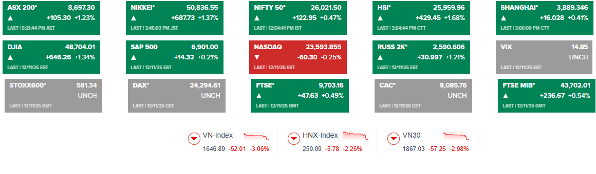 The MSCI All Country World Index, a comprehensive gauge of global equity markets, rose by 0.2% on December 12, extending its record-breaking streak from the previous session. Overnight, the Dow Jones surged nearly 650 points to a new high, while the volatility index VIX plummeted to its lowest level in three months.