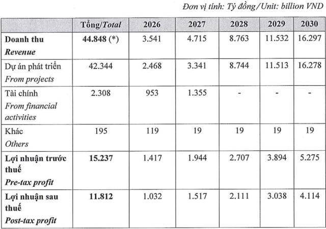 Specifically, the Board of Directors has tasked the Executive Board with developing and ensuring the sale of six projects in 2026. These include a mixed-use tourism apartment complex, multi-functional office space combined with commercial services (Hàn River) in Da Nang, covering 0.8 hectares; an urban redevelopment and residential area in Bắc Hà Thanh, spanning 43.1 hectares in Gia Lai. The remaining four projects are located in Ho Chi Minh City (new), featuring the Thuận An 1 high-rise residential complex with an area of 1.81 hectares in Thuận Giao Ward; a commercial services hub, tourism apartments, luxury villas, and a high-end hotel spanning 5.5 hectares in Phước Hải Commune; the Poulo Condor tourism area covering 12 hectares in Côn Đảo Special Zone; and the redevelopment of an old apartment building at 239 Cách Mạng Tháng Tám, covering 0.3 hectares in Bàn Cờ Ward.