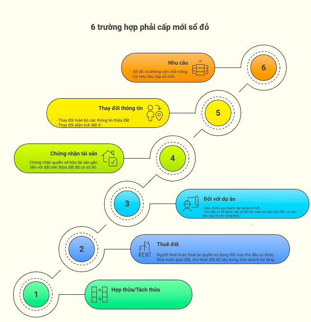 Accordingly, there are 6 cases of land and property changes that require the issuance of a new red book.