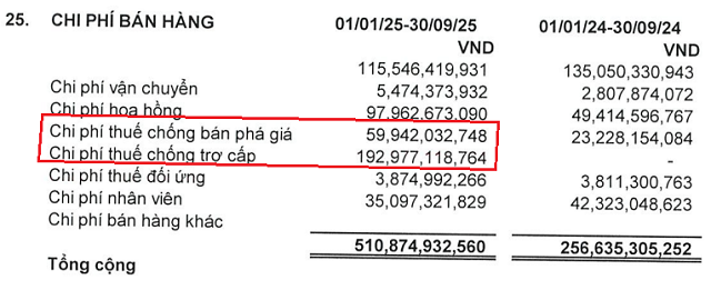 Nevertheless, the immediate impact on business results is unavoidable. In the first nine months of the year, FMC recorded nearly 100 billion VND in anti-dumping taxes, double the previous year. Countervailing duties also surged, driving up selling costs and shrinking profits, despite double-digit growth in both volume and export value.