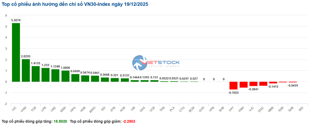 | Top 10 Stocks Impacting VN-Index on December 19, 2025 (by points) |
