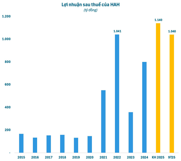 For the first nine months of 2025, HAH reported revenue exceeding VND 3,790 billion, a 36% year-on-year increase. Post-tax profit reached over VND 1,040 billion, 2.3 times higher than the same period last year. These results significantly surpass the initial profit target and achieve 79% of the adjusted plan.