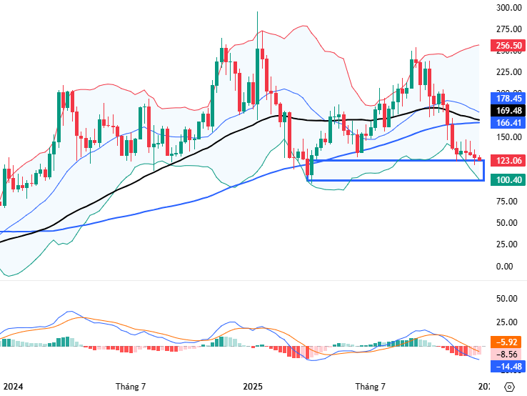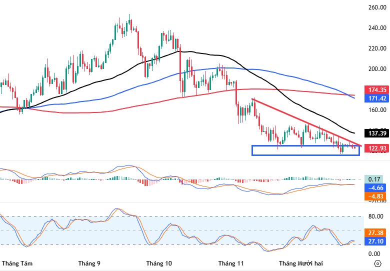 Furthermore, the price is retesting the April 2025 lows (around $100-$123 USD) as the gap between the 50-week SMA and 100-week SMA narrows. A potential death cross and breakdown below this support level could worsen the long-term outlook.