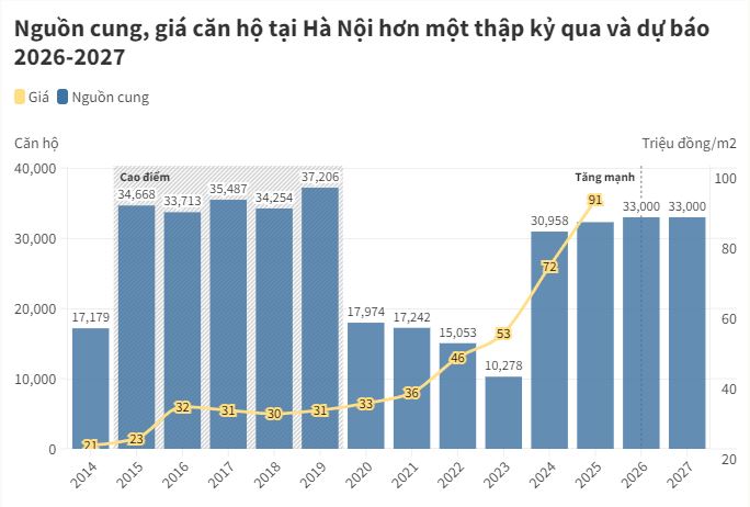 Similarly, another high-end real estate developer will construct 34 residential buildings in two major urban areas east of Hanoi. Of these, 15 buildings are expected to commence construction next year and be handed over by 2027. The total supply from this project could reach tens of thousands of units.