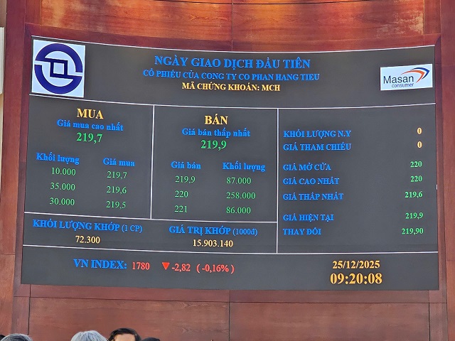 With a reference price of VND 212,800 per share on its first trading day and a trading band of +/- 20%, the market capitalization of nearly 1.07 billion MCH shares upon listing exceeded VND 227,000 billion.
