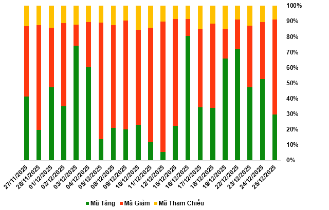 During the December 25, 2025 session, sellers regained control, driving most warrant prices downward. Notably, the top decliners included CVIC2509, CSTB2515, CMWG2511, and CMBB2511.