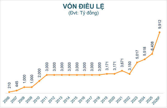 Chartered capital to increase to VND 9,912 billion in 2026.