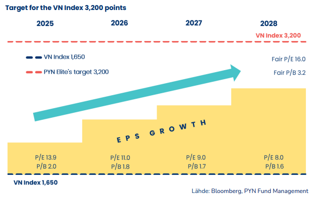 In a late November letter to investors, Mr. Petri Deryng revealed that when PYN Elite set its target allocation for Vietnam in its portfolio about 10 years ago, the fund had a long-term target for the VN-Index at 2,500 points. Now, PYN Elite has decided to raise this target to 3,200 points.