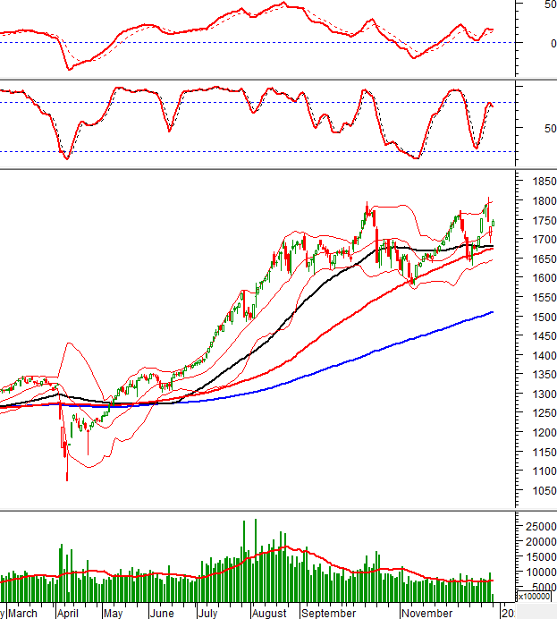 During the morning trading session on December 29, 2025, the VN-Index staged an impressive recovery, firmly holding above the Middle line of the Bollinger Bands.