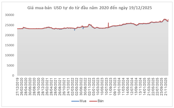 USD Free Market Plunges Below 27,000 VND Mark on December 19th Afternoon