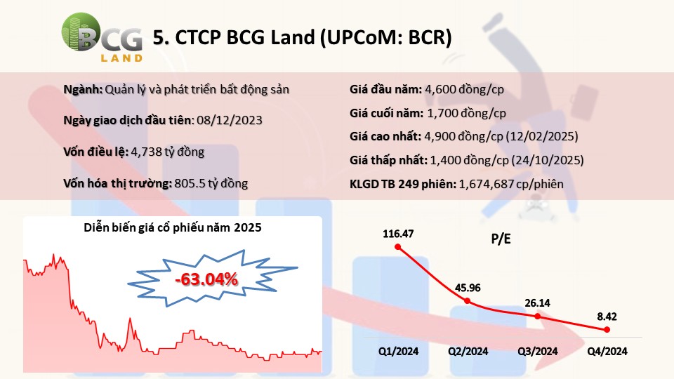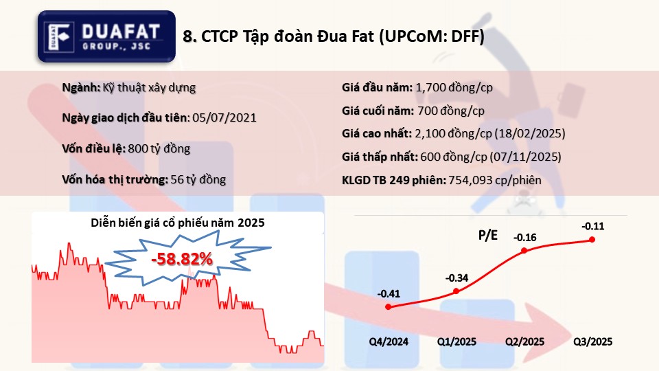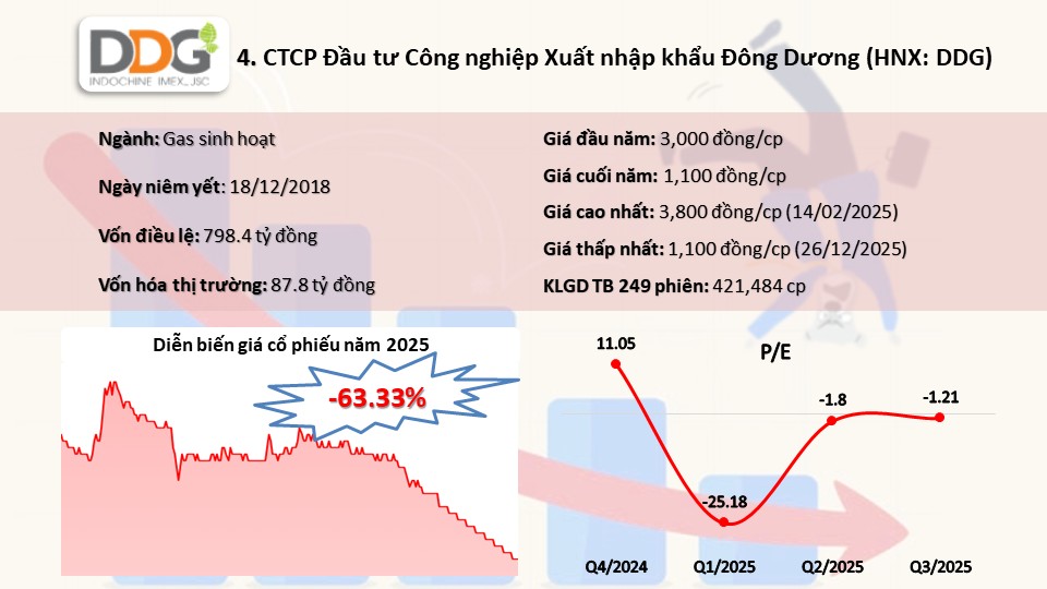DDG started 2025 promisingly, reaching nearly 3,900 VND per share, but faced sharp declines in February-April and from October, ending the year 63% lower at 1,100 VND per share. |