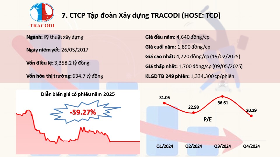VPG saw sharp declines in April and June 2025, linked to insider trading concerns and the indictment of former Chairman Nguyễn Văn Bình for bribery. Despite a mid-year recovery, it ended the year 58% lower at 5,020 VND per share. |