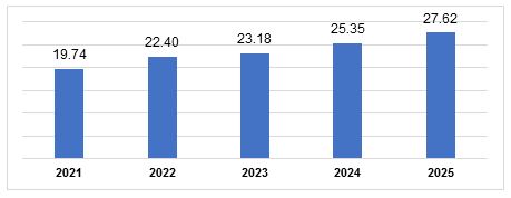 Foreign Direct Investment (FDI) Implementation in Vietnam, 2021-2025 (Billion USD)