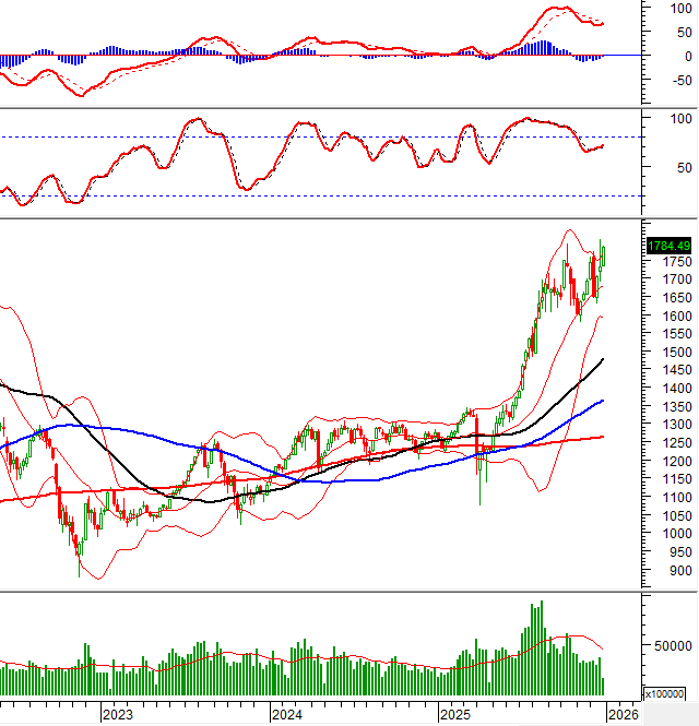 Currently, the VN-Index is testing the October 2025 highs (around 1,740-1,795 points) and remains above the Middle Band of the Bollinger Bands. Additionally, the MACD indicator continues to rise, further supporting the short-term recovery momentum.