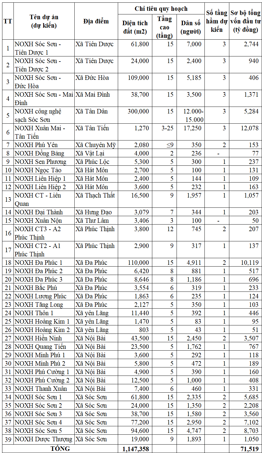 While Tan Tien Commune has only one project, the Xuan Mai – Tan Tien Social Housing, it stands out with the largest investment of VND 12,078 billion, catering to a population of 17,250.