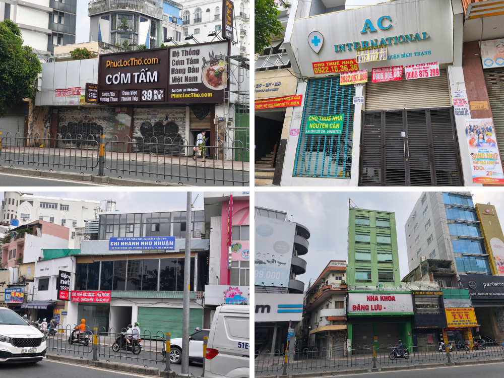 Even on bustling streets like Phan Dang Luu and entertainment hubs like Phan Xich Long, large vacant storefronts are common. Photo: Thuong Ngoc |