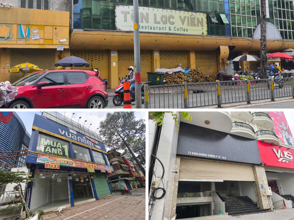 Even major thoroughfares connecting the city center to the West like 3 Thang 2 and Kinh Duong Vuong have numerous large, vacant storefronts. Photo: Thuong Ngoc |