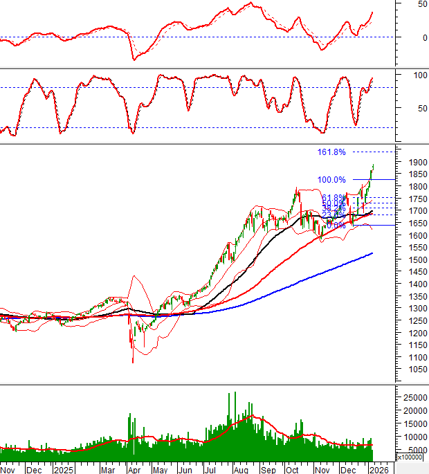 The index remains firmly attached to the Upper Band of the Bollinger Bands, with the next target set at the 1,935-1,950 point range.
