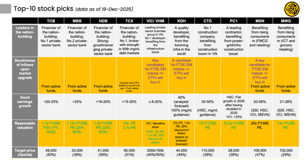 For investors, the presence of HDB, TCB, and MBB in Maybank Securities’ list underscores a clear trend: the 2026 cycle is about banks with strong fundamentals, high efficiency, and the ability to lead capital allocation in a more selective market.