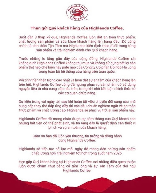Highlands Coffee’s Official Statement