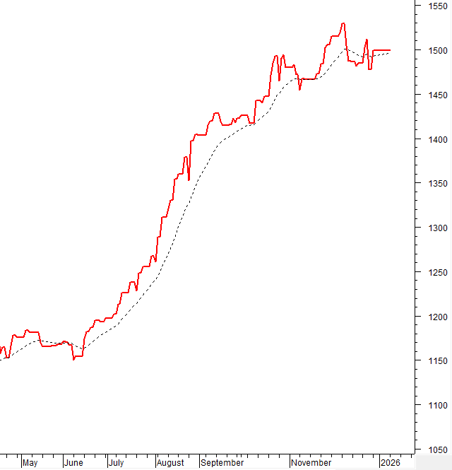 The VN-Index continued to rise with trading volumes above the 20-day average, reflecting investor optimism. The positive outlook was reinforced by the MACD maintaining its upward trend and widening its distance from the Signal line. However, the Stochastic Oscillator is deeply in the overbought zone, so investors should be cautious about potential volatility if a reversal signal emerges in upcoming sessions.