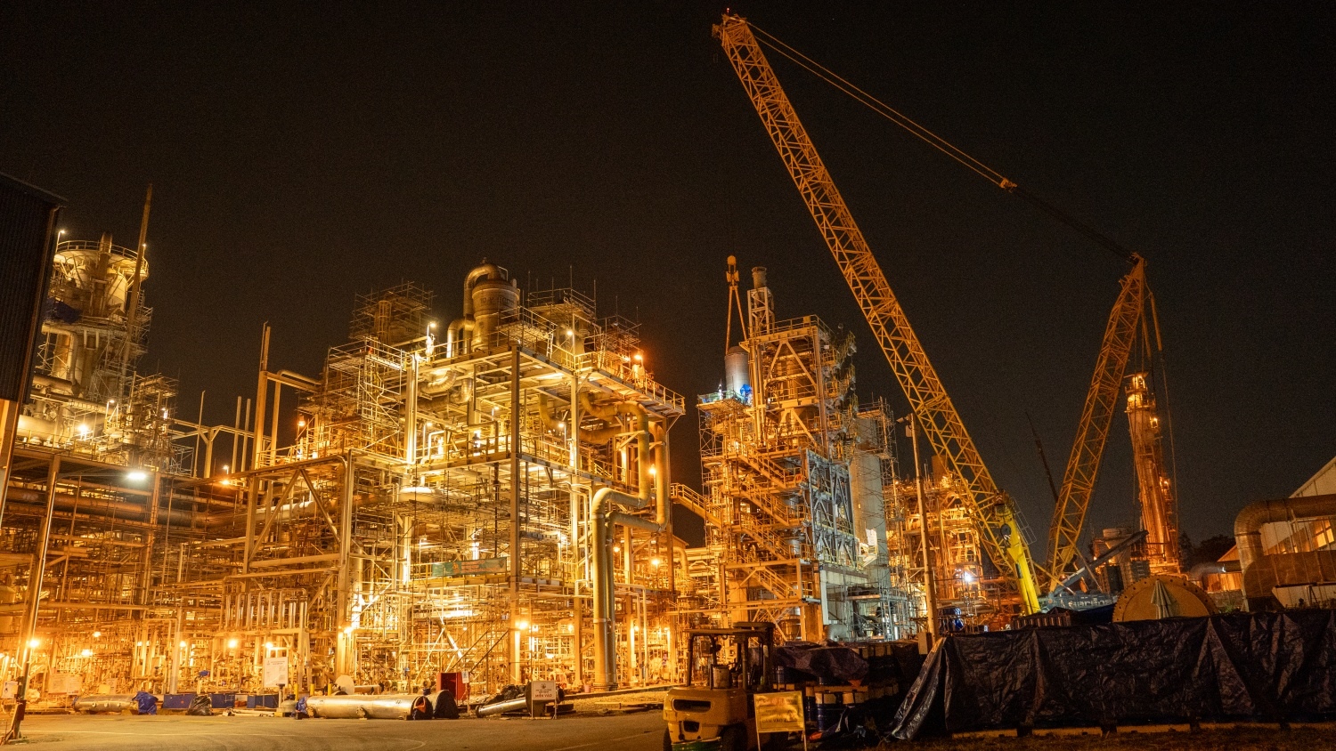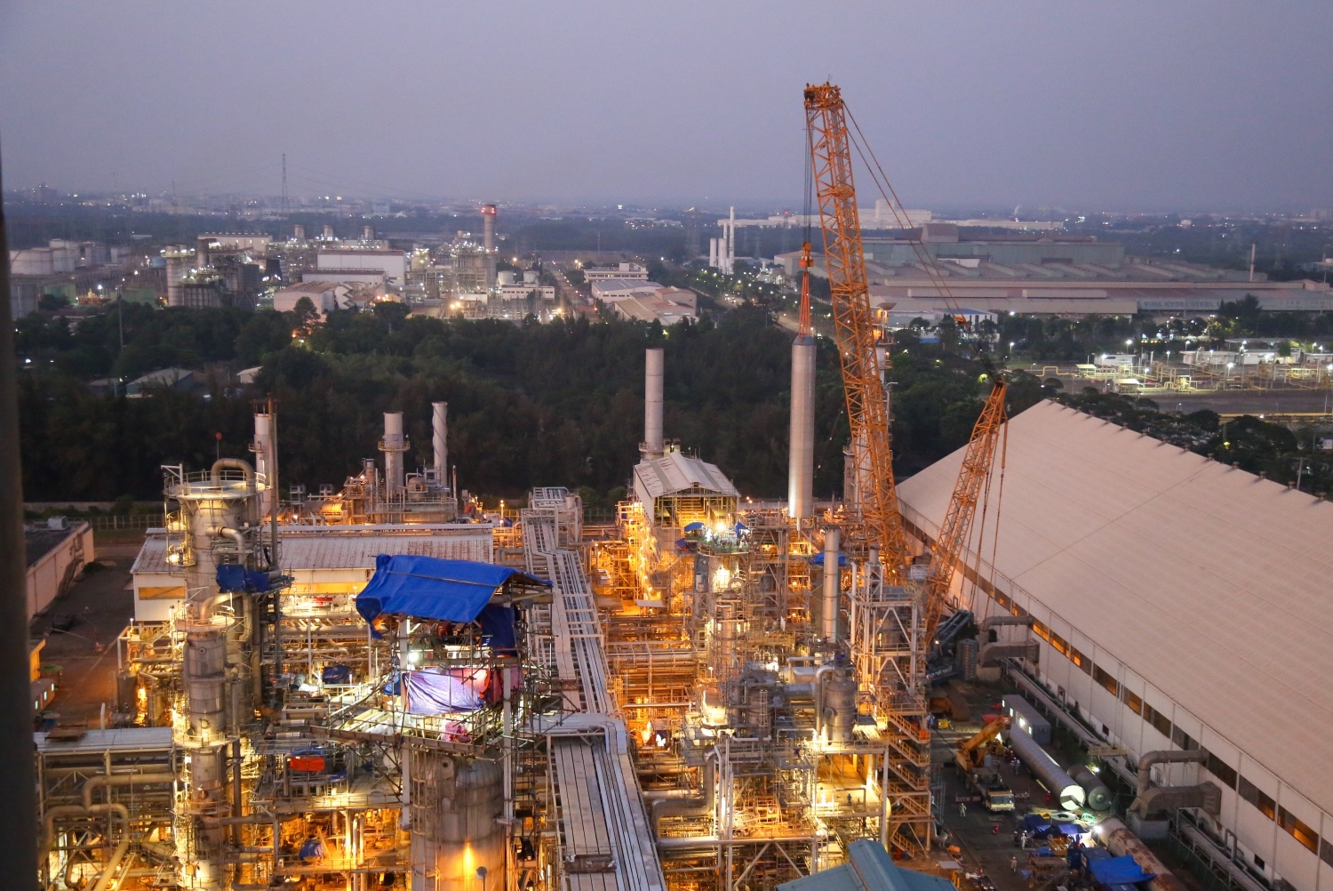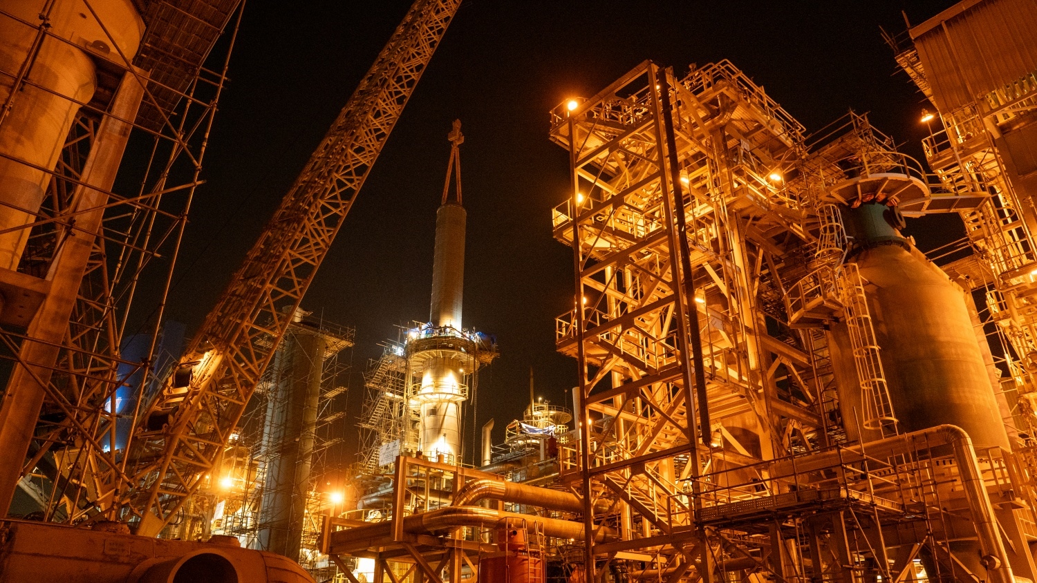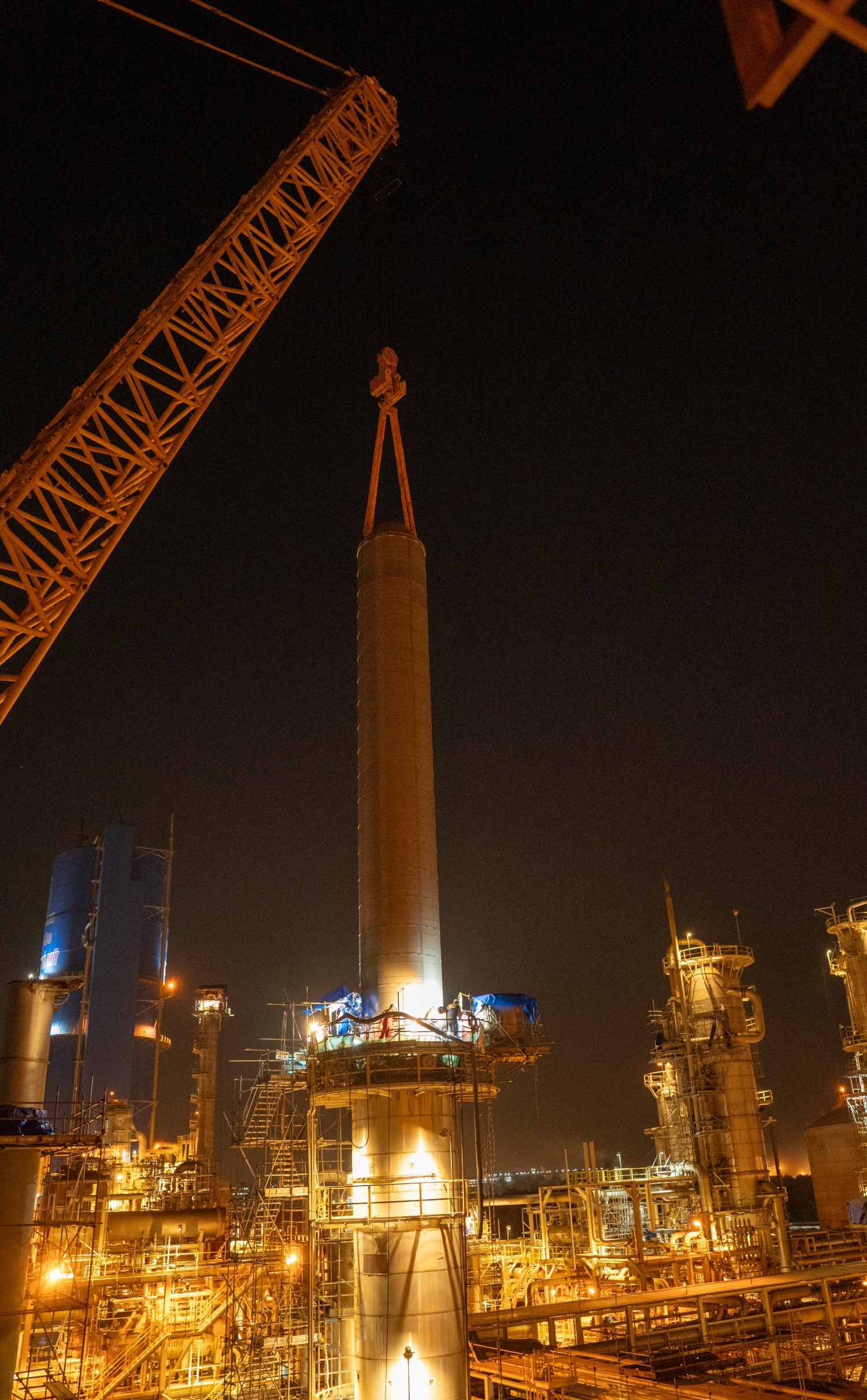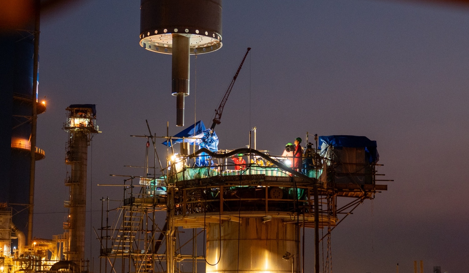 By nearly 6 PM, the crane lifted the catalyst basket out of the storage shell.