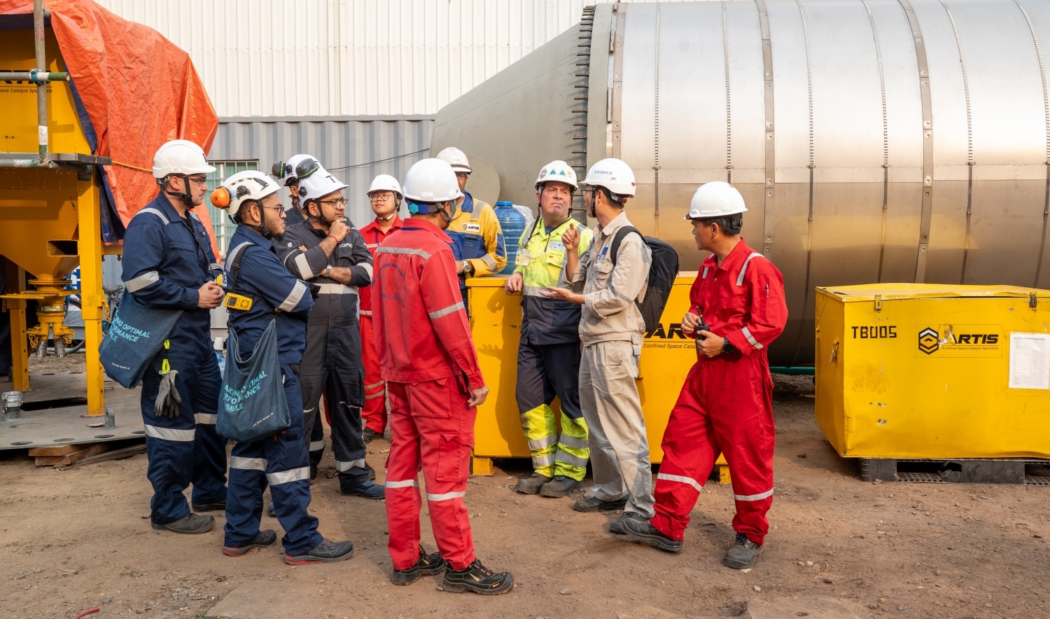 Representatives from the contractor, licensor, investor, and consultant met on-site to inspect the installation conditions. Upon confirming technical compliance, they agreed to crane the new catalyst basket from the storage shell to the installation site later that day.