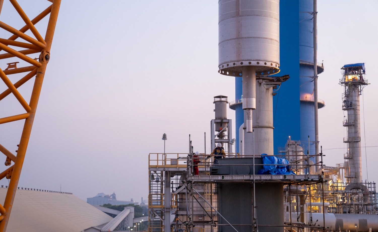 On January 10th, at around 2 PM, the scaffolding inside the equipment shell was removed to prepare for the installation of the catalyst basket.