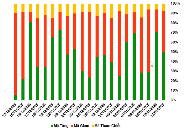 By the close of trading on January 13, 2026, the market recorded 123 advancing codes, 102 declining codes, and 20 unchanged codes.