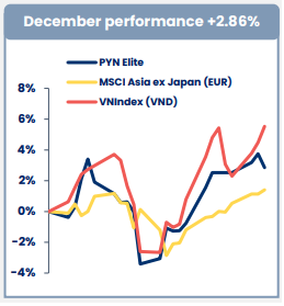 Amid this backdrop, PYN Elite recorded a 2.9% increase in December, boosting its full-year performance to 17.38%, albeit modest compared to the VN-Index‘s 41% surge.