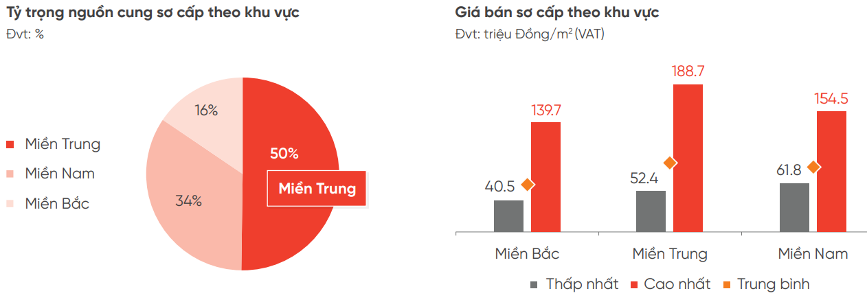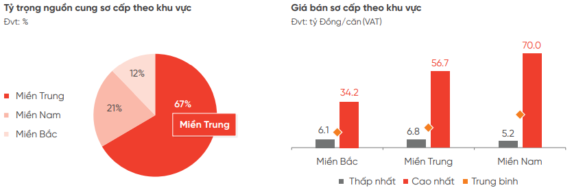 Primary selling prices rose by an average of 8% year-over-year, peaking at 200 billion VND per unit in the Central region.
