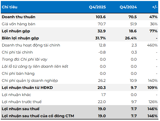 In Q4/2025, a leading construction stone supplier in Dong Nai—a region buzzing with major infrastructure projects—reported a remarkable surge in revenue. The company’s net sales reached nearly VND 104 billion, a 47% increase year-over-year. Net profit soared to VND 19 billion, nearly 2.5 times higher than the same period last year.