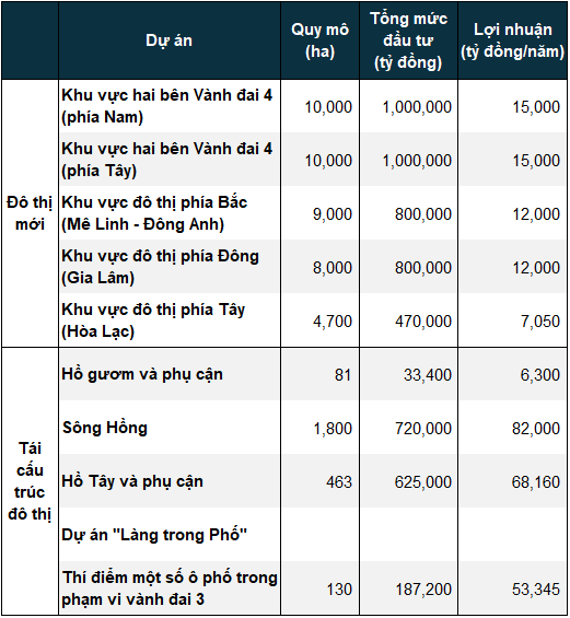 Accordingly, in the list of strategic projects for 2026-2035, Hanoi announces 5 new urban area projects and 5 urban restructuring projects with a total investment of over 5.6 million billion VND.