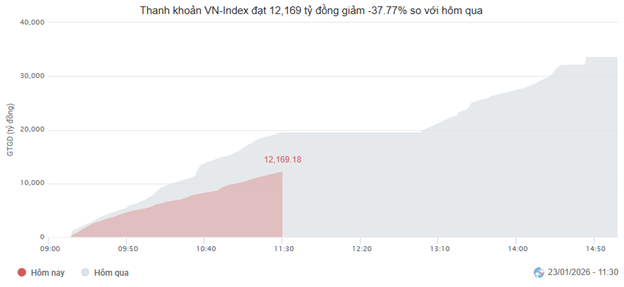 | Top 10 stocks most impacting the VN-Index in the morning session of January 23, 2026 (measured in points) |